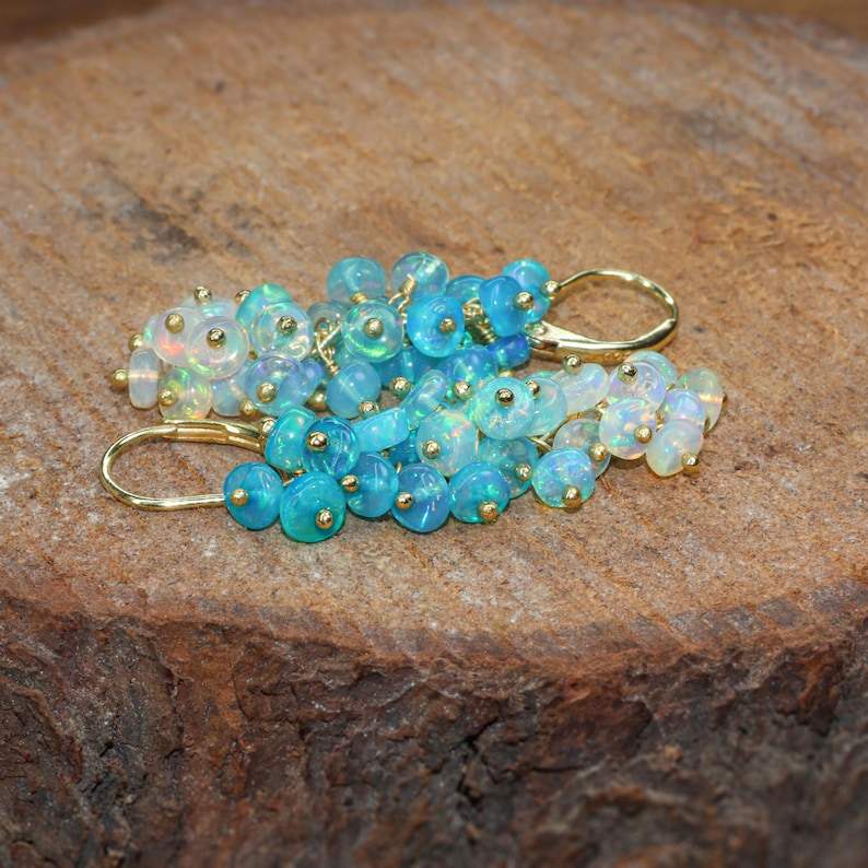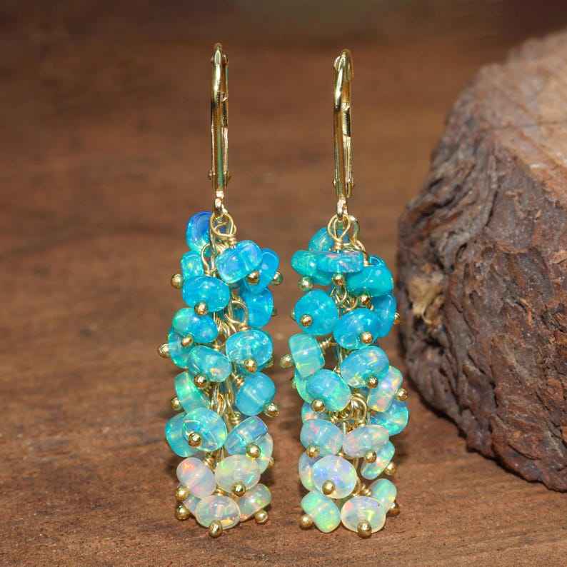Keyword:Ethiopian Paraiba Opal Beads Cluster Earrings Shine With