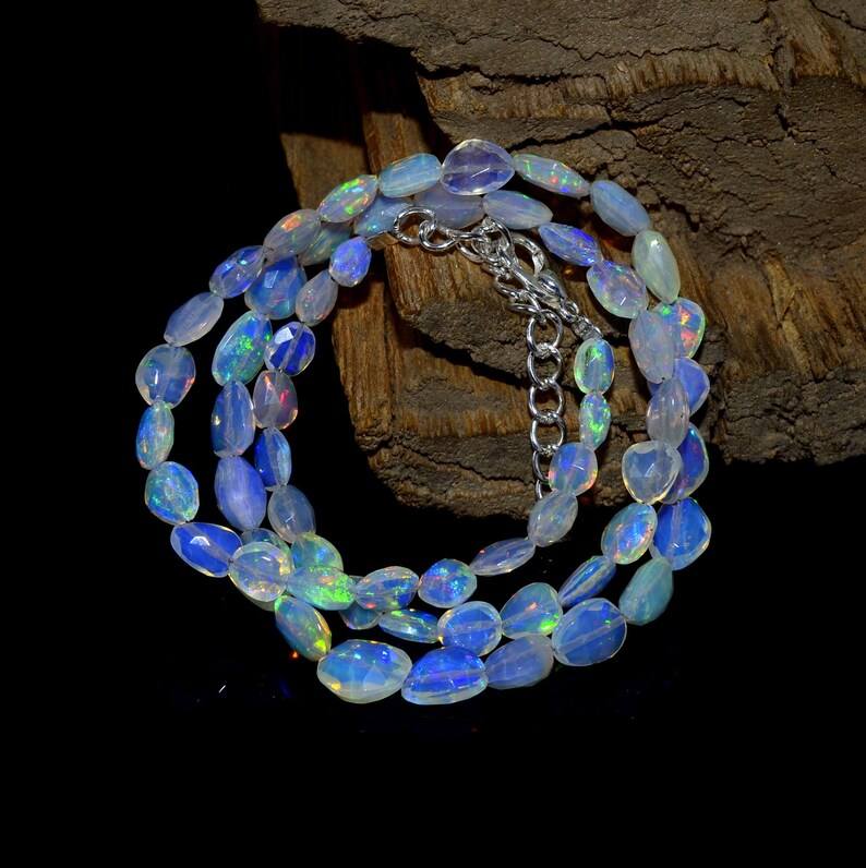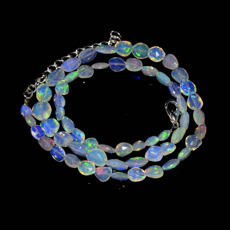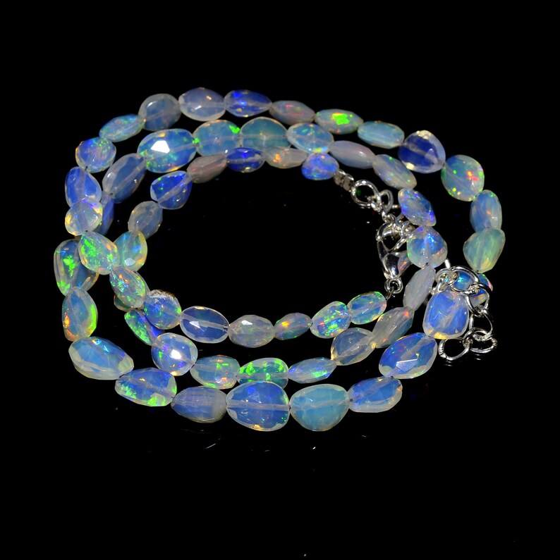 Ethiopian Radiant White Opal Necklace Faceted Nugget Beads Multi Rainbow Premium Welo Fire Gemstone Jewelry for Women Gift