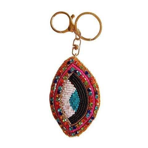 Porte-clés ethnique à motif animalier avec breloque perlée, sangle en cuir durable et broderie de perles complexe, breloque de sac légère et tendance