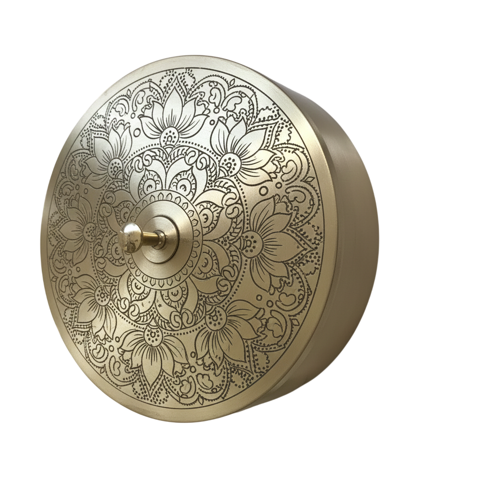 Ethnic Brass Masala Dabba Floral Engraved Lid and Spoon | Round Multi Bowl Spice Storage Box for Home Kitchen and Hotel Supply