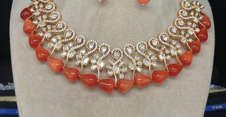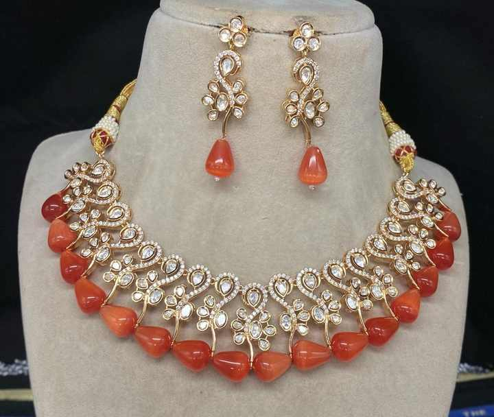 Ethnic Kundan Brass Necklace Earrings Set with American Diamonds Elegant Bridal Jewelry for Weddings and Festive Celebrations
