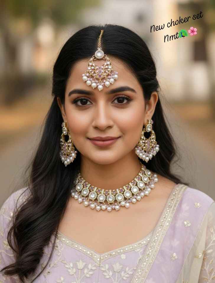 Products Name:Fancy Collection Gold Plated Kundan & Pearl Necklace Set