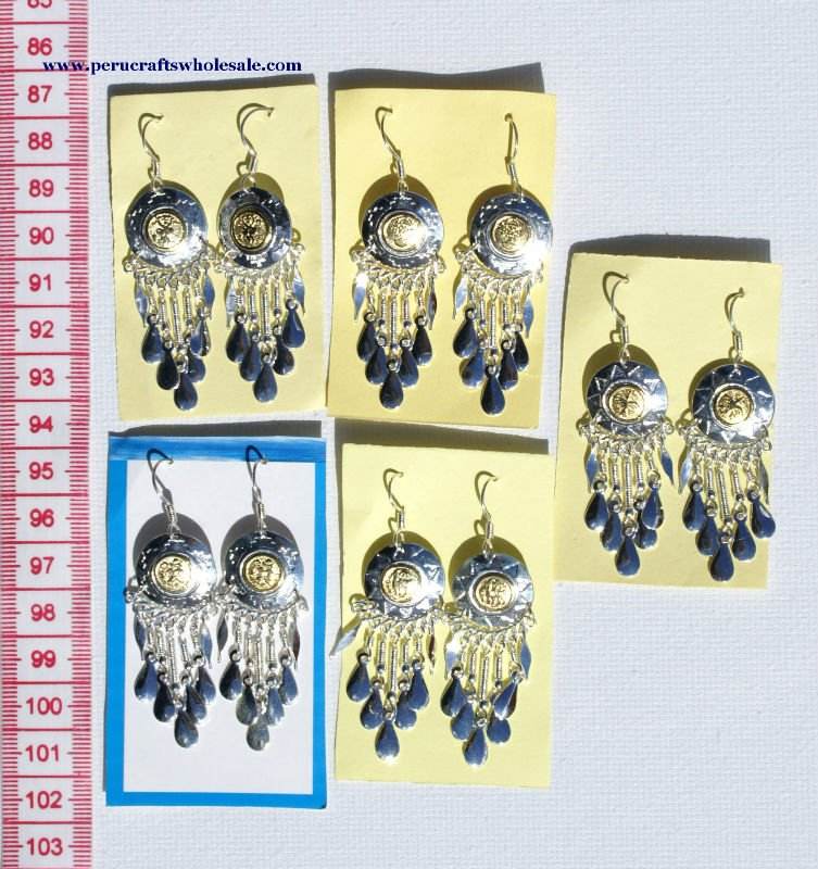 Boucles d'oreilles ethniques péruviennes faites à la main en métal Bijoux sud-américains du Pérou Fashion Wholesale