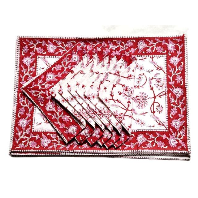 Set de tapis de Table réutilisable pour salle à manger, 8 pièces, style ethnique, avec support de serviette assortie, ensemble imprimé de 6 toile et de serviettes en coton