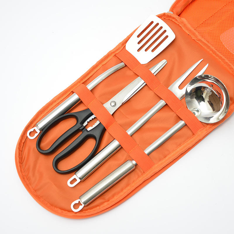Ensemble de cuisine d'extérieur de style ethnique, ustensiles de pique-nique portables en acier inoxydable, sac de transport, fabriqué au Zhejiang