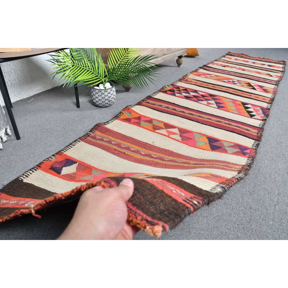 Tapis Turc Vintage Ethnique Beige 2.6 X 11ft Grande Surface Classique Rectangle Patchwork Design Laine PP Matériel Latex pour Couloir