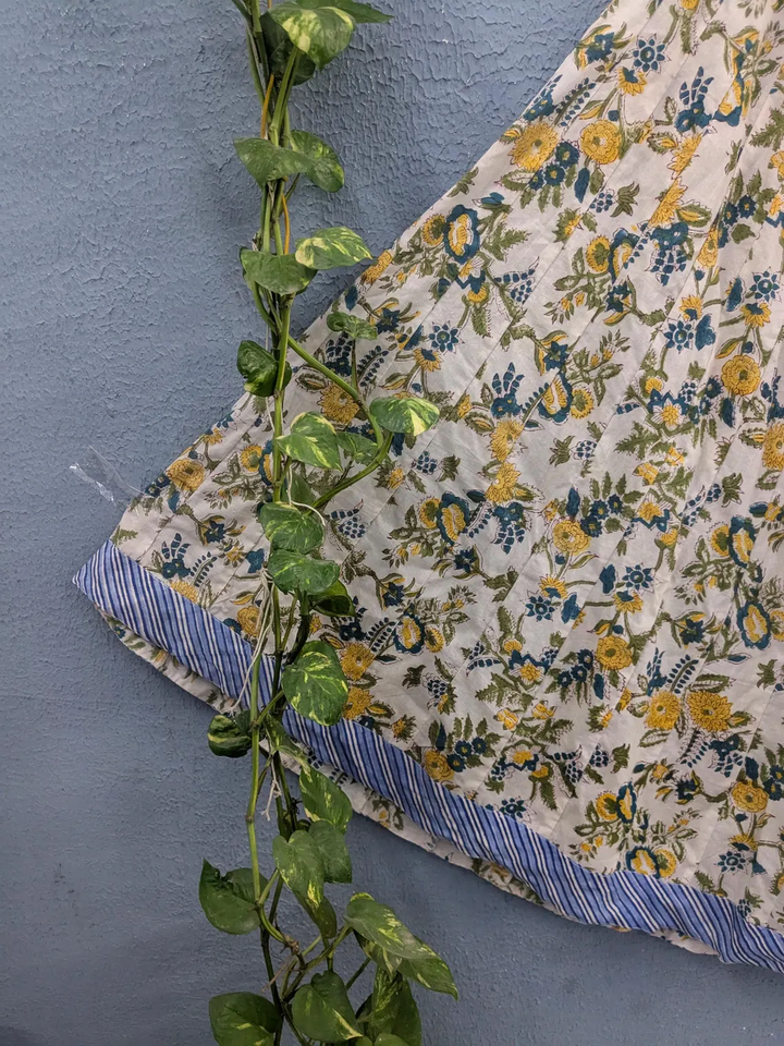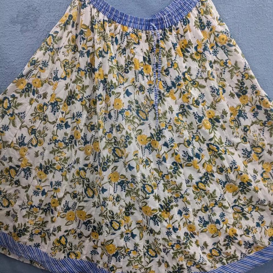 Ethnic Women's Summer Dress Hand Block Printed Cotton Long Maxi Skirt with Elastic Waist Breathable Sustainable Casual Style