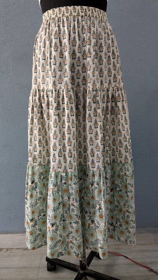 Ethnic Women's Summer Dress Hand Block Printed Cotton Long Maxi Skirt with Elastic Waist Breathable Sustainable Casual Style