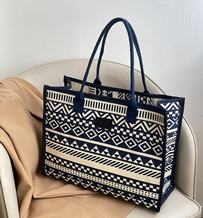 Ethnic style thickened canvas bag 2026 new handheld shopping bag, large capacity single shoulder tote bag