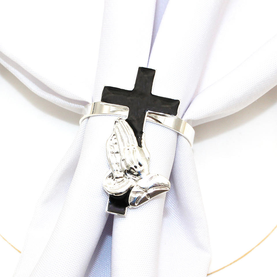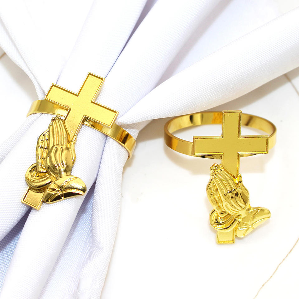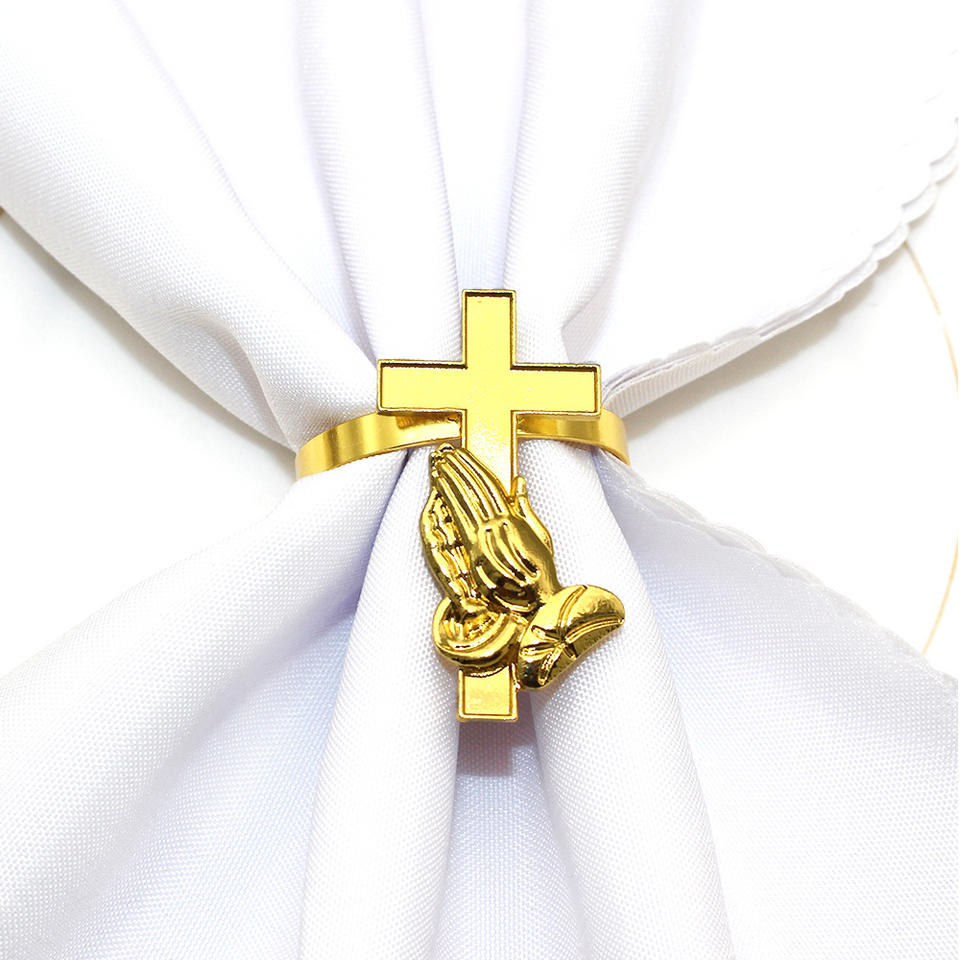 Porte-ronds de serviette croix en métal goutte d'huile baptême eucharistique pour la décoration de table de fête