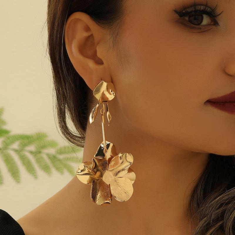 Euro-American Cross-Border Electroplated Gold Flowers Stud Earrings Unisex Classic Style Personalized Fashionable Gift Earrings