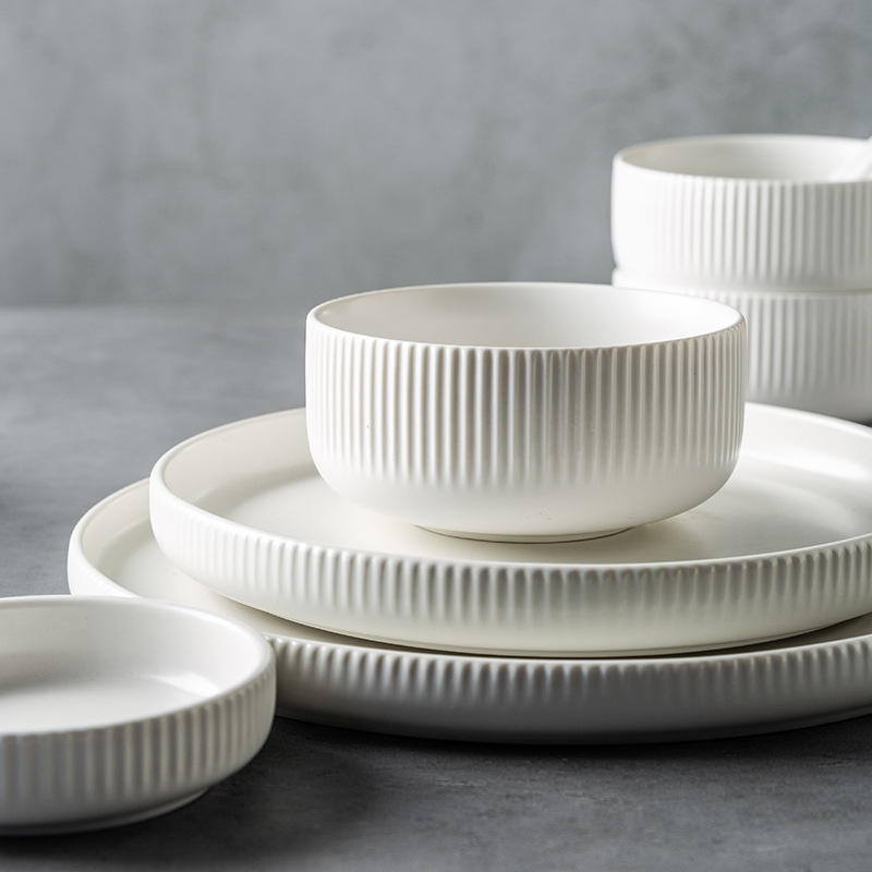 Service de Table Céramique 16 Pièces Design Moderne Euro pour Cuisine et Salle à Manger, Collection Complète pour 4 Personnes, Option Éco-Responsable, Couleurs au Choix