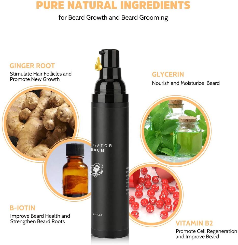 Kit de croissance de la barbe et de la moustache naturel et biologique activateur de sérum de barbe pour hommes meilleure vente en Europe 100%
