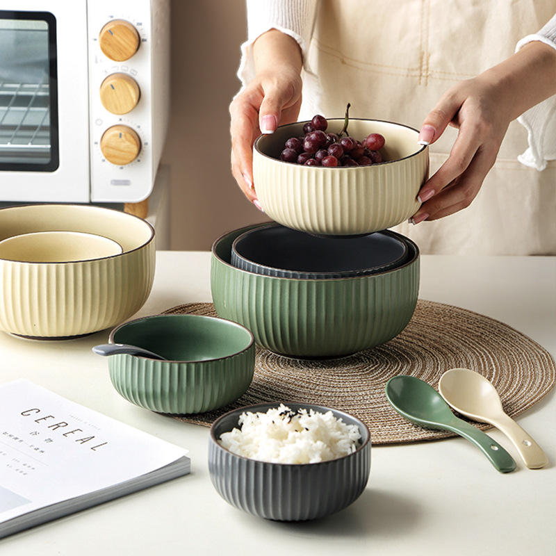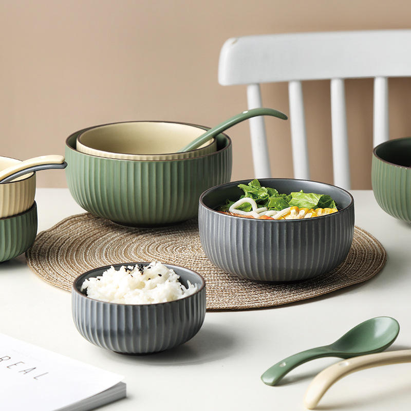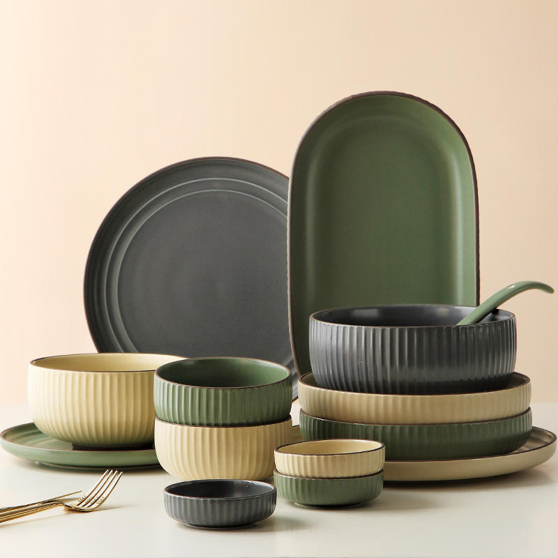 Ensemble de vaisselle en céramique européenne ménage créatif plaque à rayures verticales combinaison baguettes vaisselle en gros