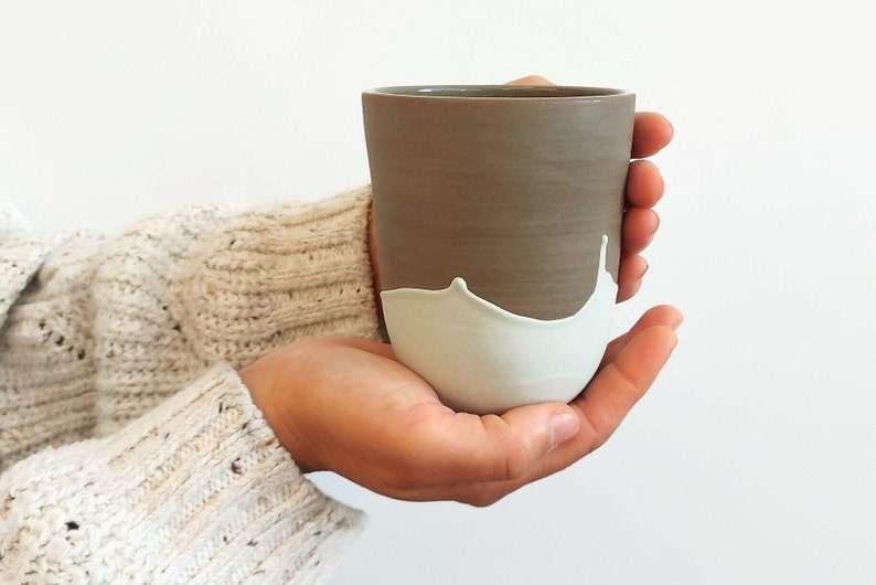 Point nom:Grosse Céramique Tumbler Poignées Tasse avec Teal Gouttes