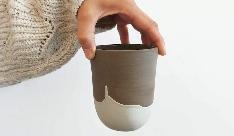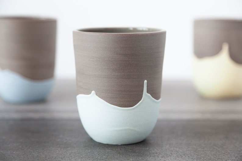 Grande tasse à café en grès gris fait à la main, tasse en céramique avec gouttes de sarcelle