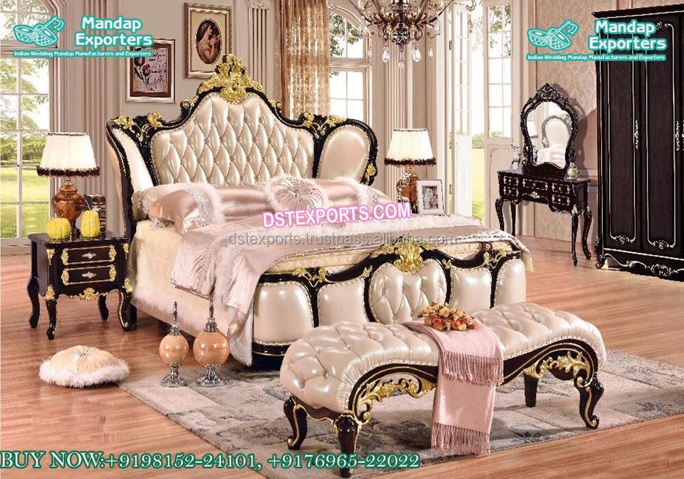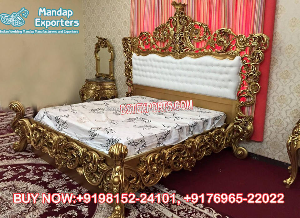Ensemble de meubles de chambre à coucher doré sculpté à la main de style européenNom du produit