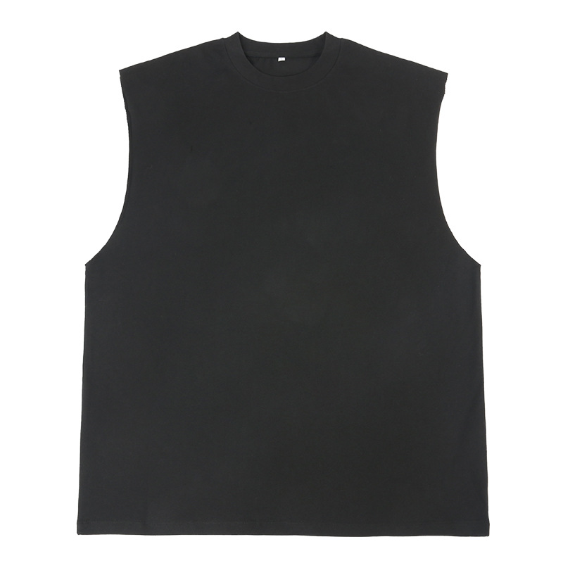 Europe and the United States Trend Heavy Loose Edge Cotton Loose Sleeveless Men Retro Wide Shoulder Heart T-shirt for men