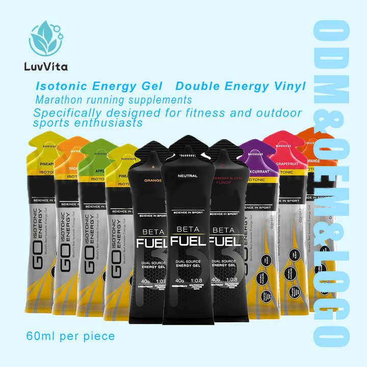 Agent gélifiant naturel en vinyle noir à double énergie, le plus vendu en Europe, supplément sportif pour adultes pour la course de marathon et les glucides