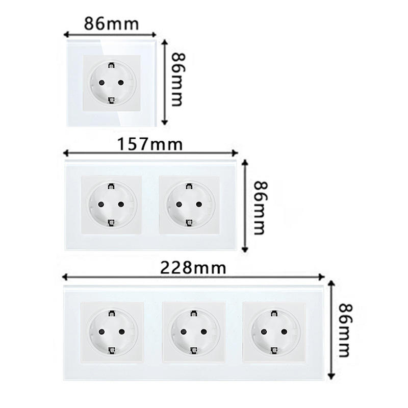 Prise murale européenne 16A, panneau en verre trempé 86 mm, boîte ronde, protection de la prise, installation encastrée