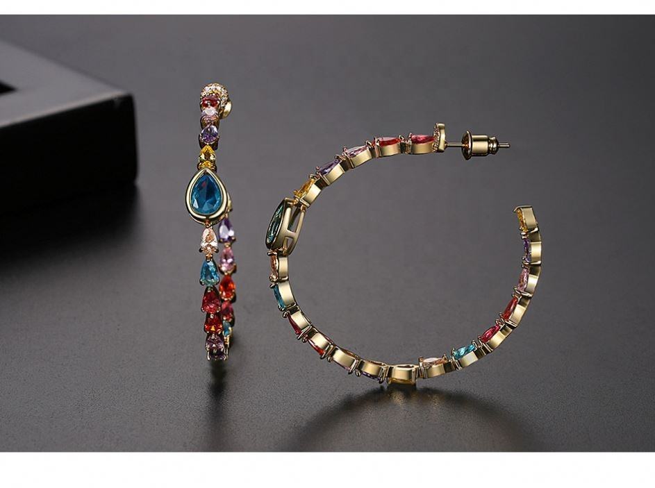 Boucles d'oreilles clous style européen et américain, mignonnes et colorées, en zircon, pour femmes, accessoires de robe de soirée