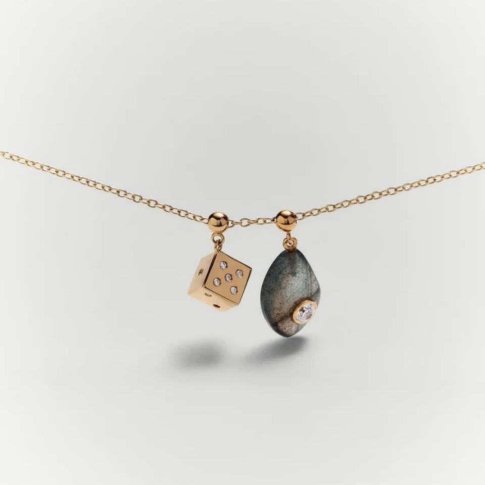 Pendentif de collier DIY tendance en acier inoxydable et or 18 carats, avec pierre principale en zircon motif cerise, de la série quotidienne européenne et américaine, style jeu de cartes