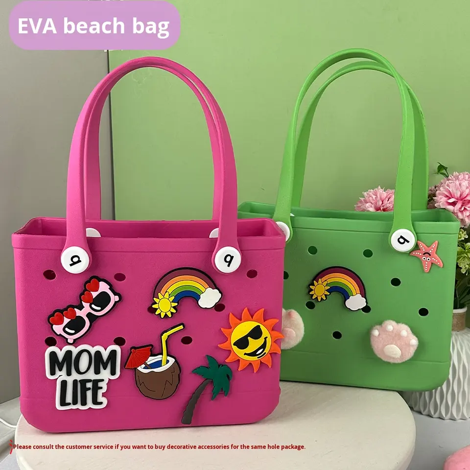Sac fourre-tout portable extensible en EVA couleur unie, style européen et américain, pour la plage, la piscine, sac de plage DIY, petit sac à main hiver 2024