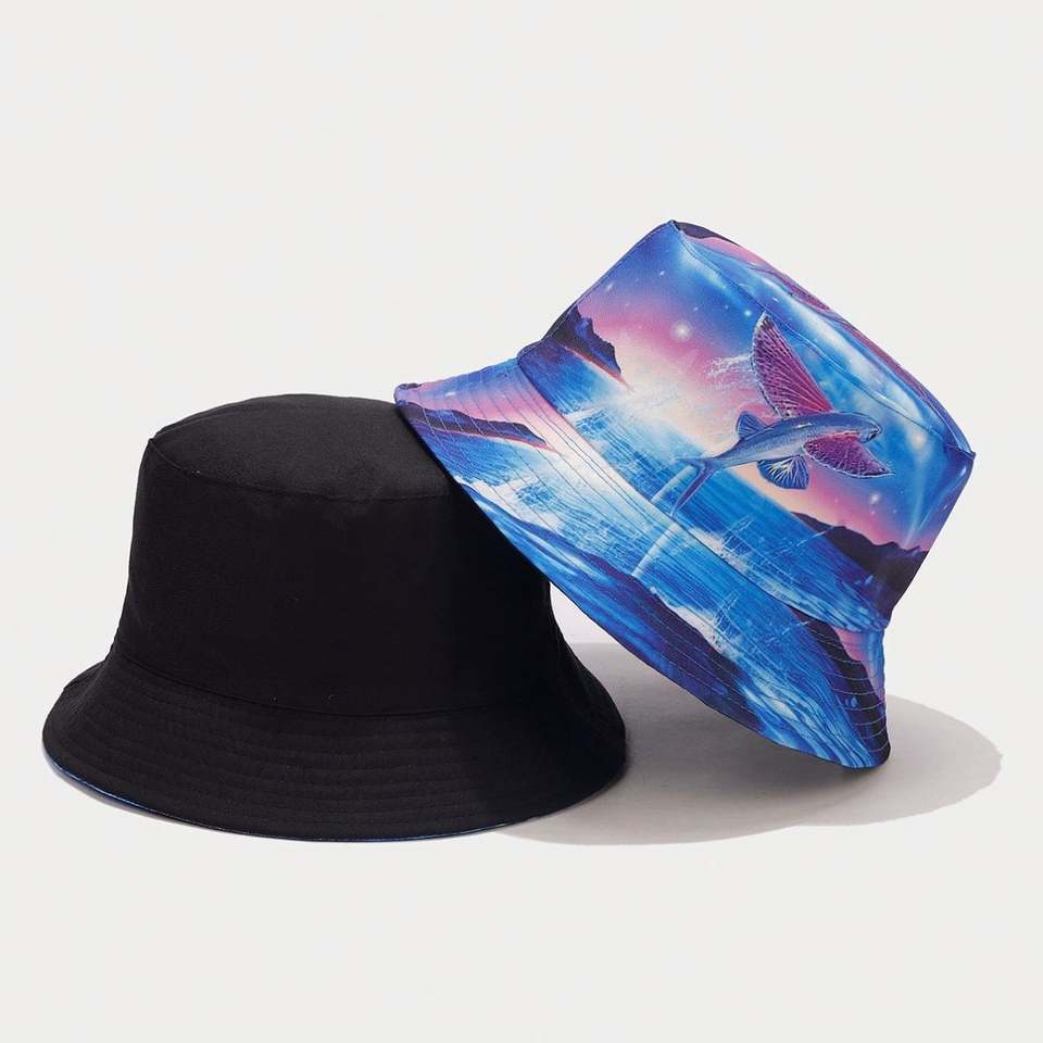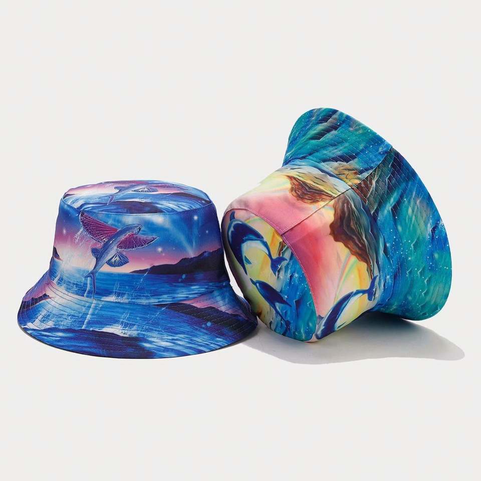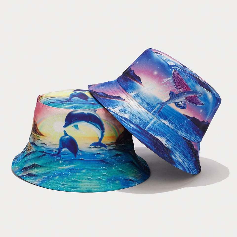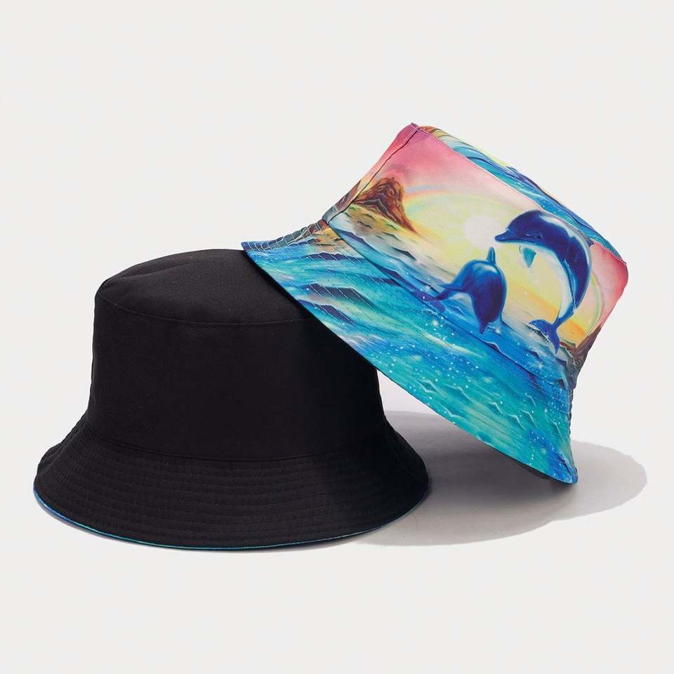 Chapeau Bob Réversible Tendance Mode Euro-Américaine avec Motif Graffiti Dauphin pour Homme – Idéal Plage, Vacances, Pêche, Protection Solaire