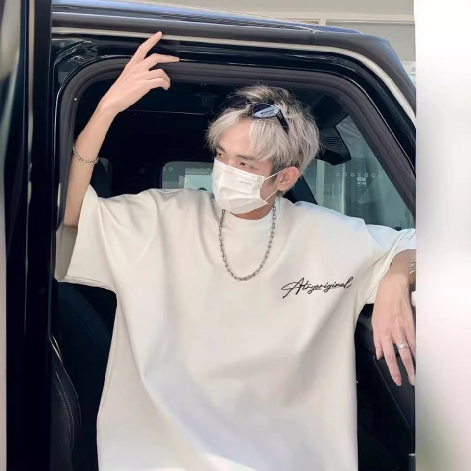 T-shirt uni pour homme, style urbain européen et américain, style garçon, blanc, à manches courtes, 100% coton, anti-boulochage