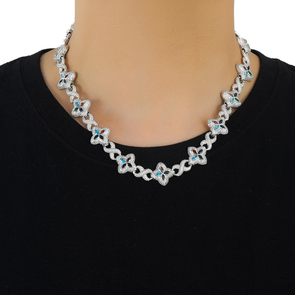 Collier trèfle à quatre feuilles style hip-hop européen et américain, collier ras du cou tendance et cool pour hommes et femmes, zircon 5A, anniversaire