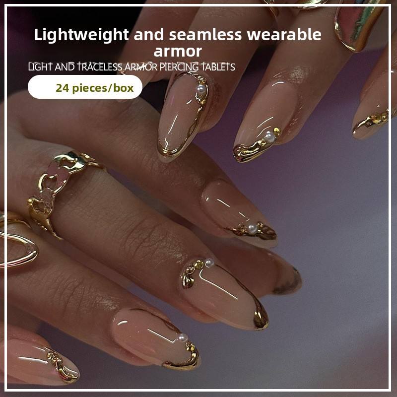 French Style Gold-Edged Customizable Logo Pre-Designed Press-On Nails 24 Pieces ABS Material Solid Pattern Oval Shape Medium