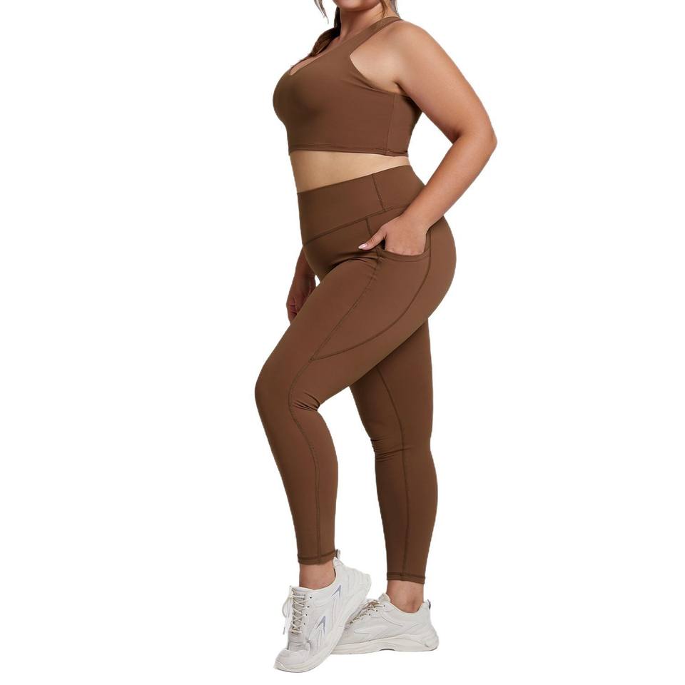 Ensemble de yoga 2 pièces grande taille pour femme, style européen et américain, couleur unie, haute élasticité, respirant, tenue de fitness ajustée