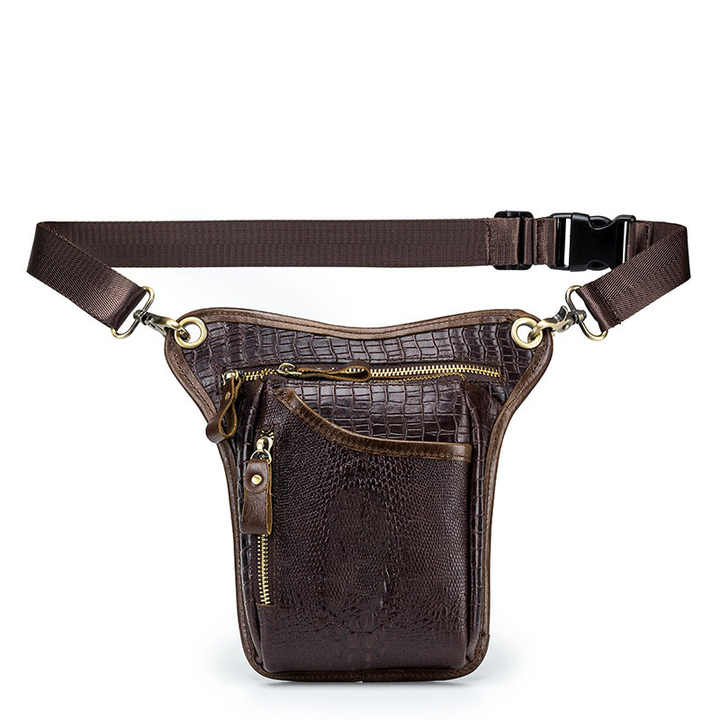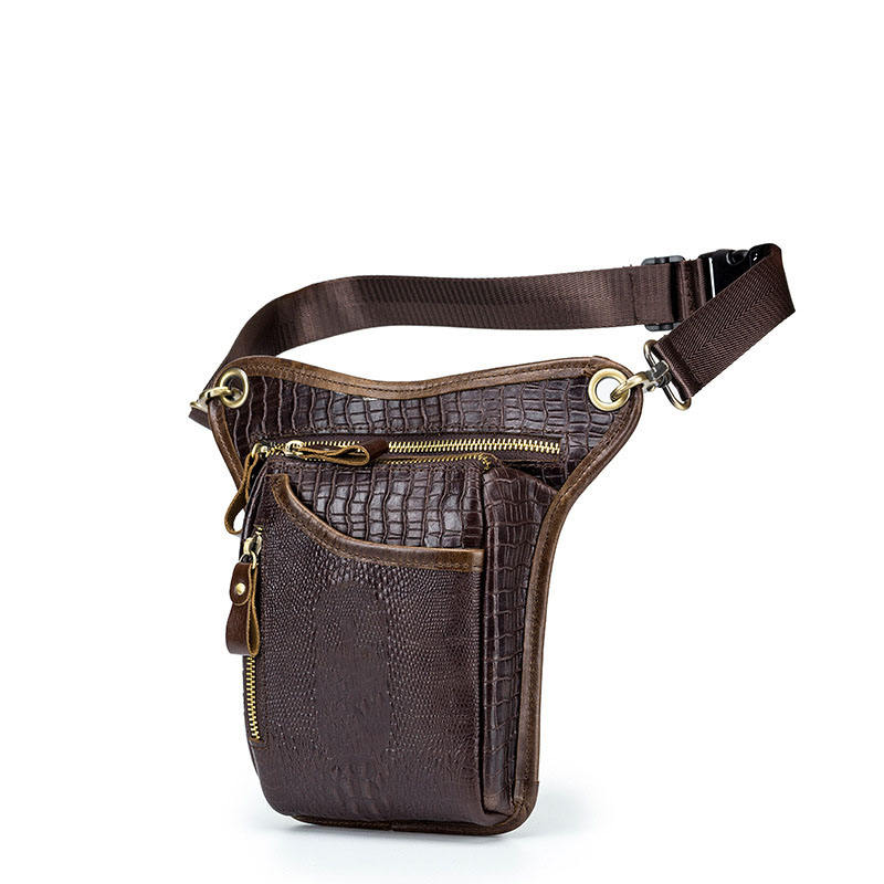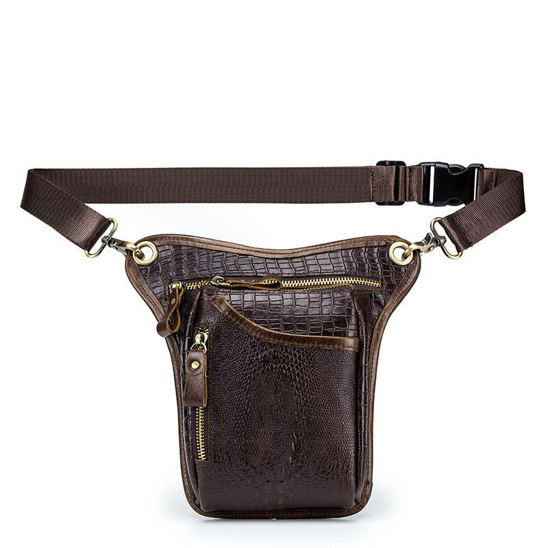Sacoche de moto rétro en cuir de vachette pour hommes, cuir véritable, motif crocodile, sacoche de selle pour moto