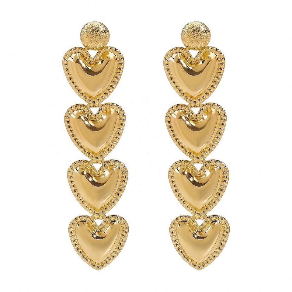 Boucles d'oreilles longues en forme de cœur de style rétro européen américain de Hong Kong, design simple et polyvalent pour les fêtes ou les cadeaux