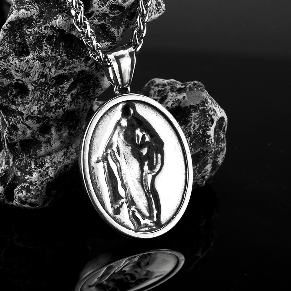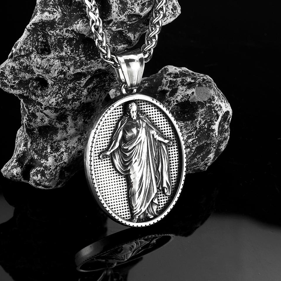 Collier religieux pour homme en acier inoxydable, style rétro européen et américain, avec pendentif Saint grec antique, bijou de cérémonie