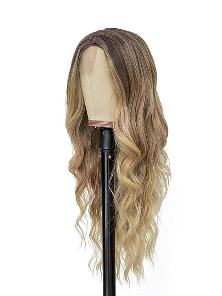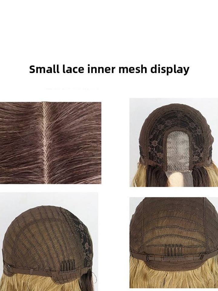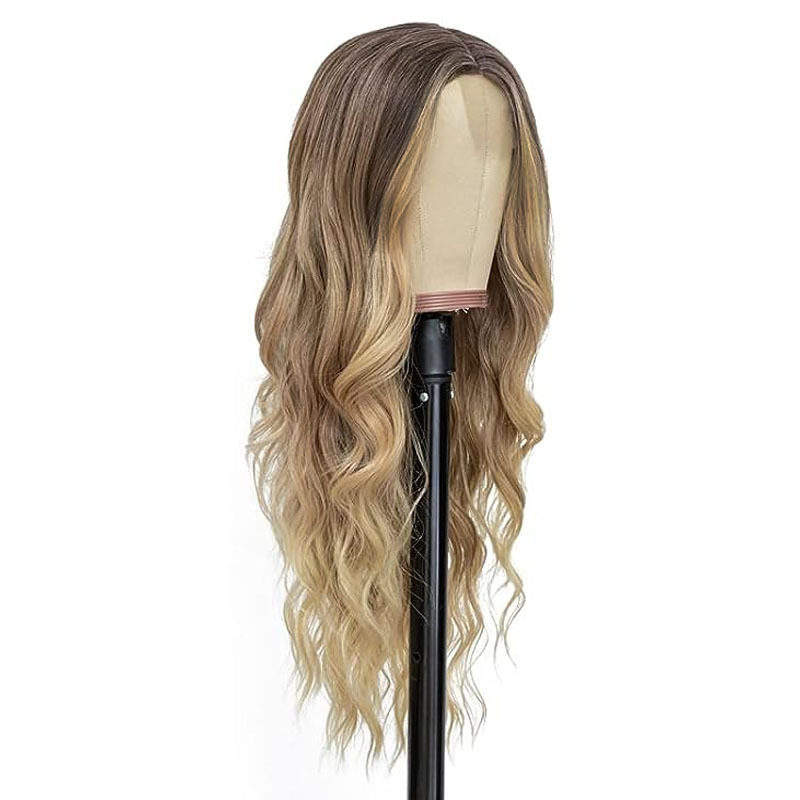 Perruque longue bouclée à grandes ondulations, blonde et brune, avec petite dentelle tissée dégradée, style européen-américain pour le commerce extérieur