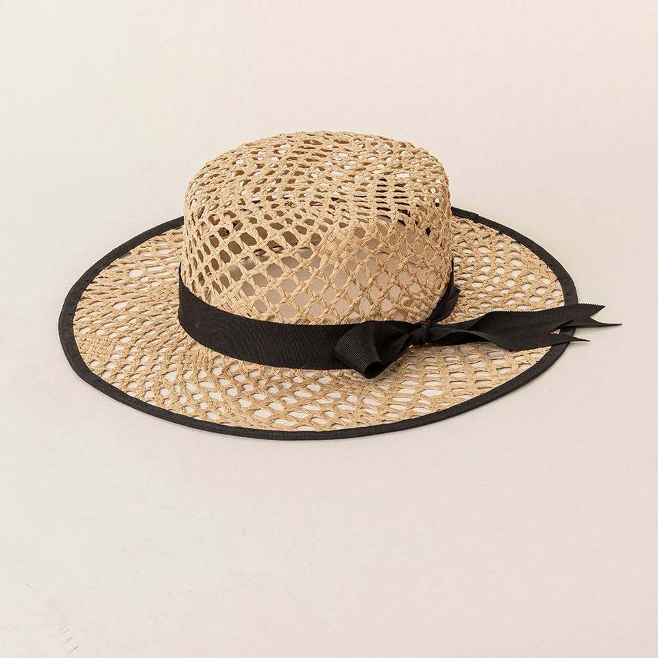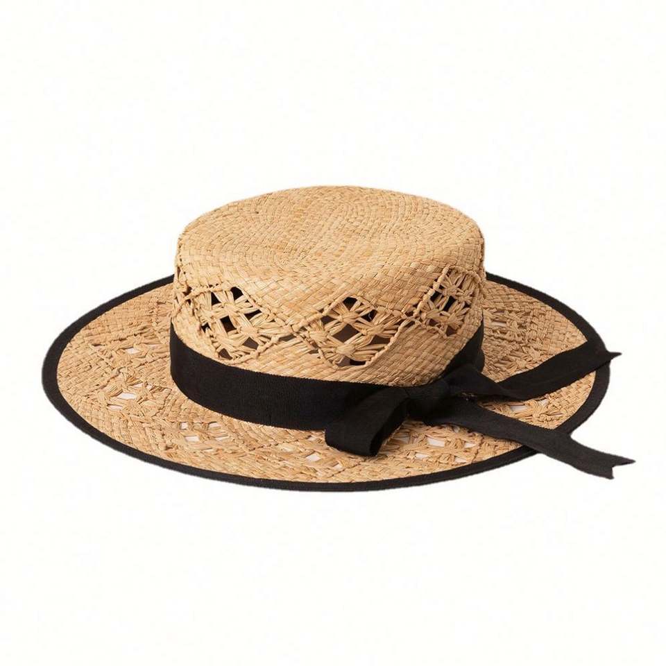 Nouveau Chapeau de Paille en Raphia Fait Main Style Européen et Américain Printemps-Été, Chapeau Plat, Chapeau Canotier, Décoration Nœud Creux, Chapeaux de Paille Décontractés