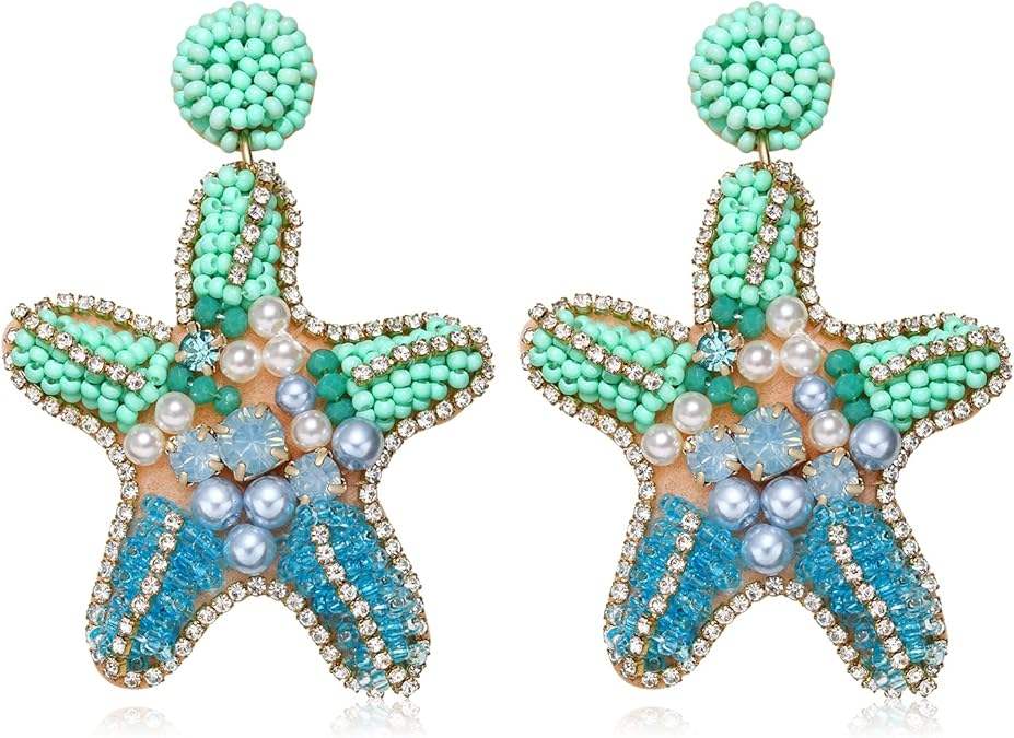 Ensemble de boucles d'oreilles en perles de style européen et américain vert rouge style bohème occidental pané en or vente en gros d'accessoires vestimentaires