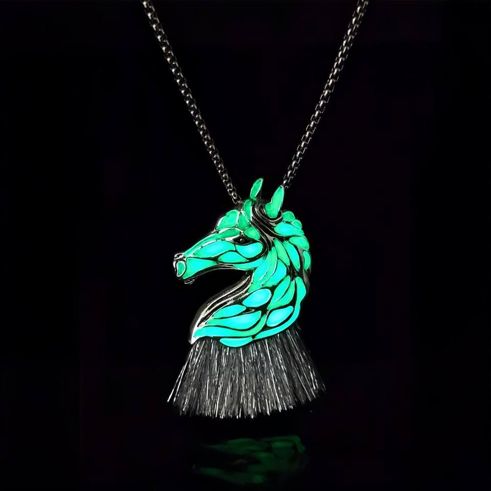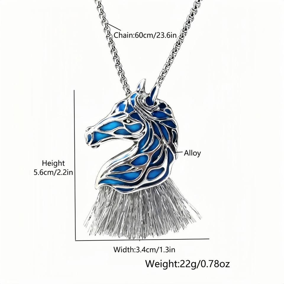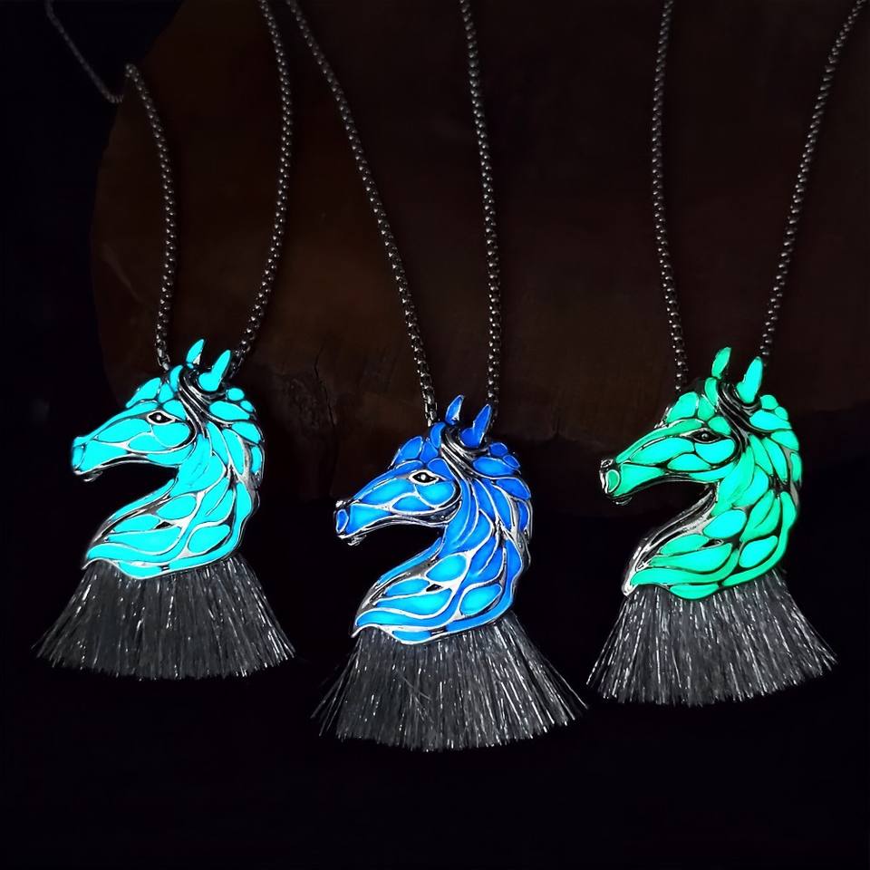 Collier en alliage de zinc style européen et américain, motif cheval lumineux, pendentif zodiaque cheval lumineux, chaîne à maillons, pour homme et femme