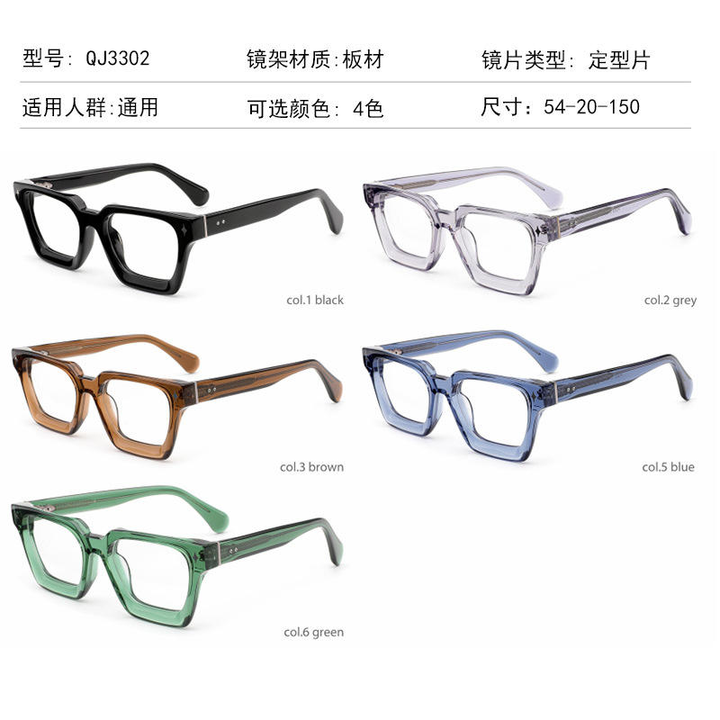 Style européen américain nouveau carré optique lunettes cadre confortable épais acétate bleu myopie Spectacle hommes femmes 3302 lecture