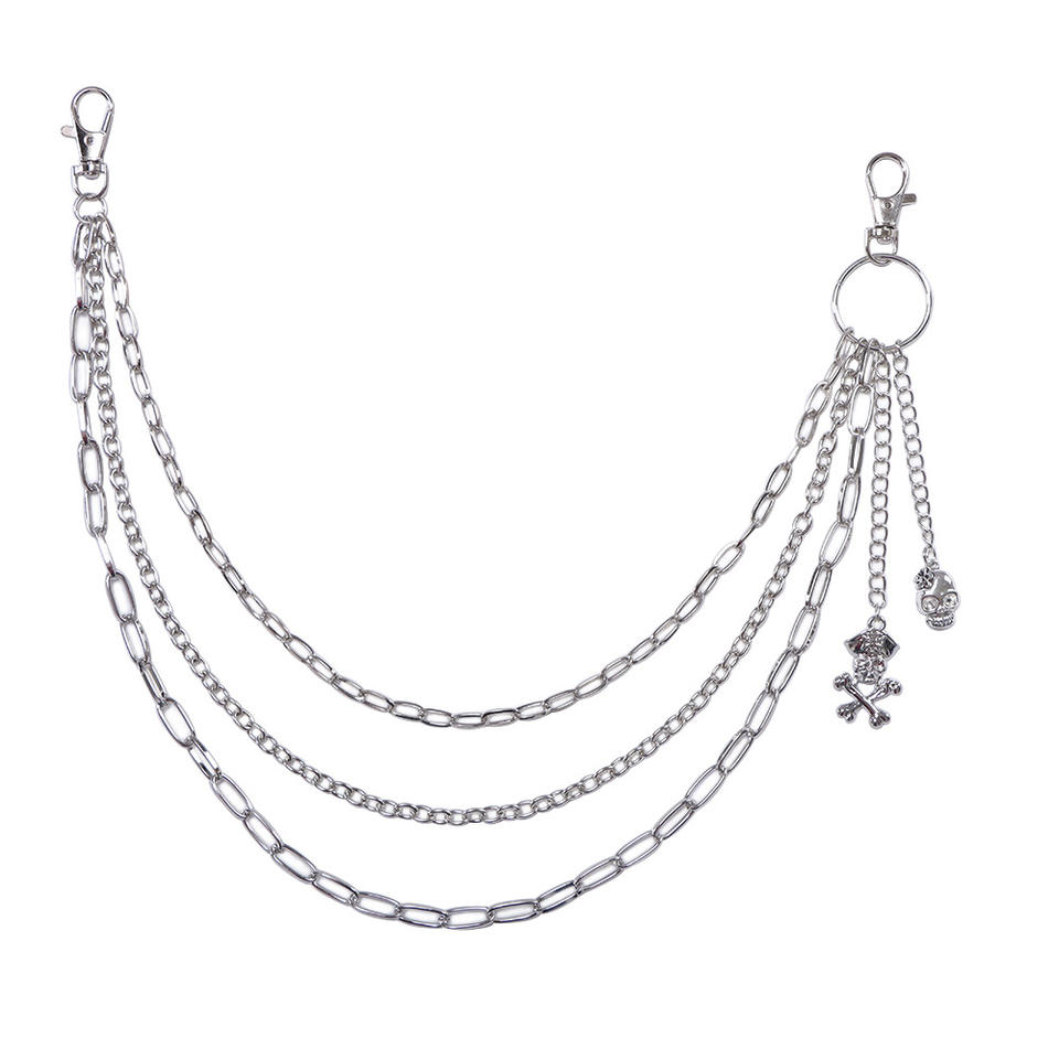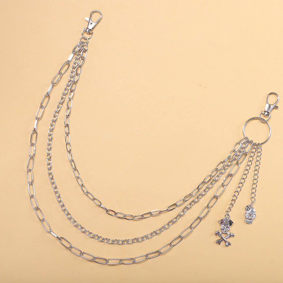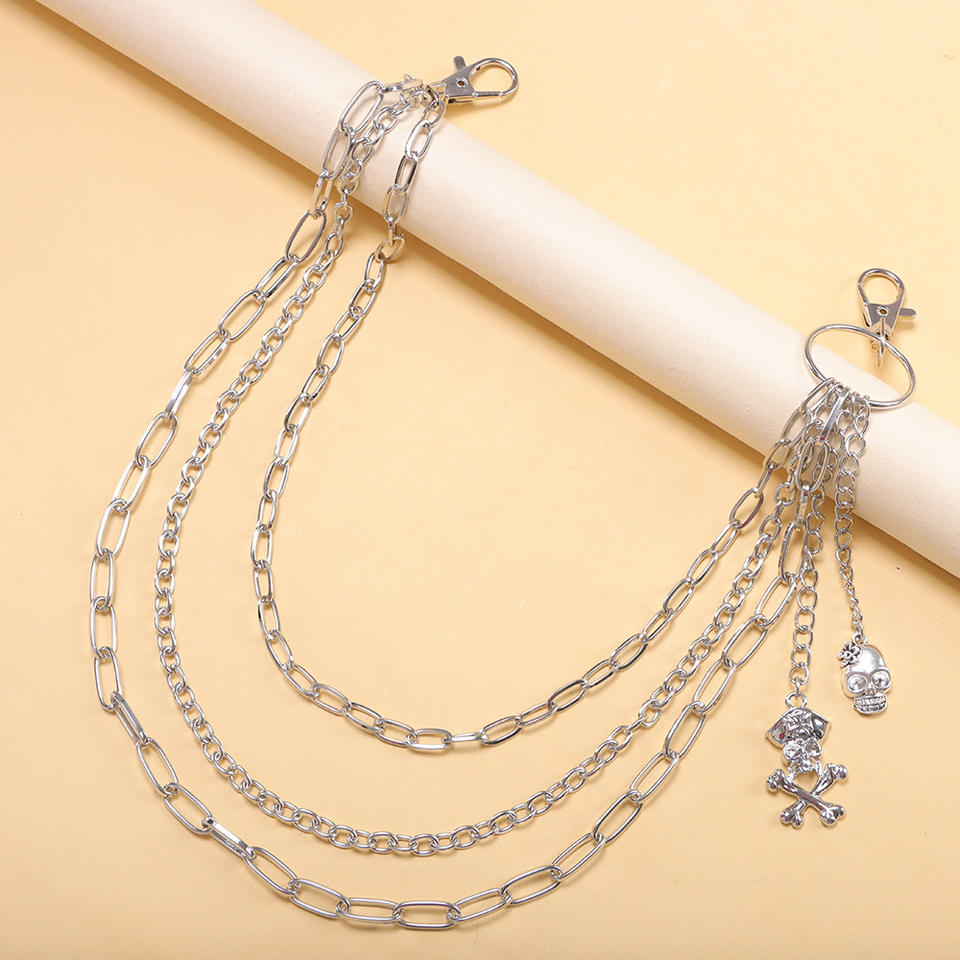 Chaîne de pantalon style européen et américain, pendentif crâne multicouche en métal, chaîne de taille hip-hop, chaîne de corps décontractée et tendance en alliage de zinc