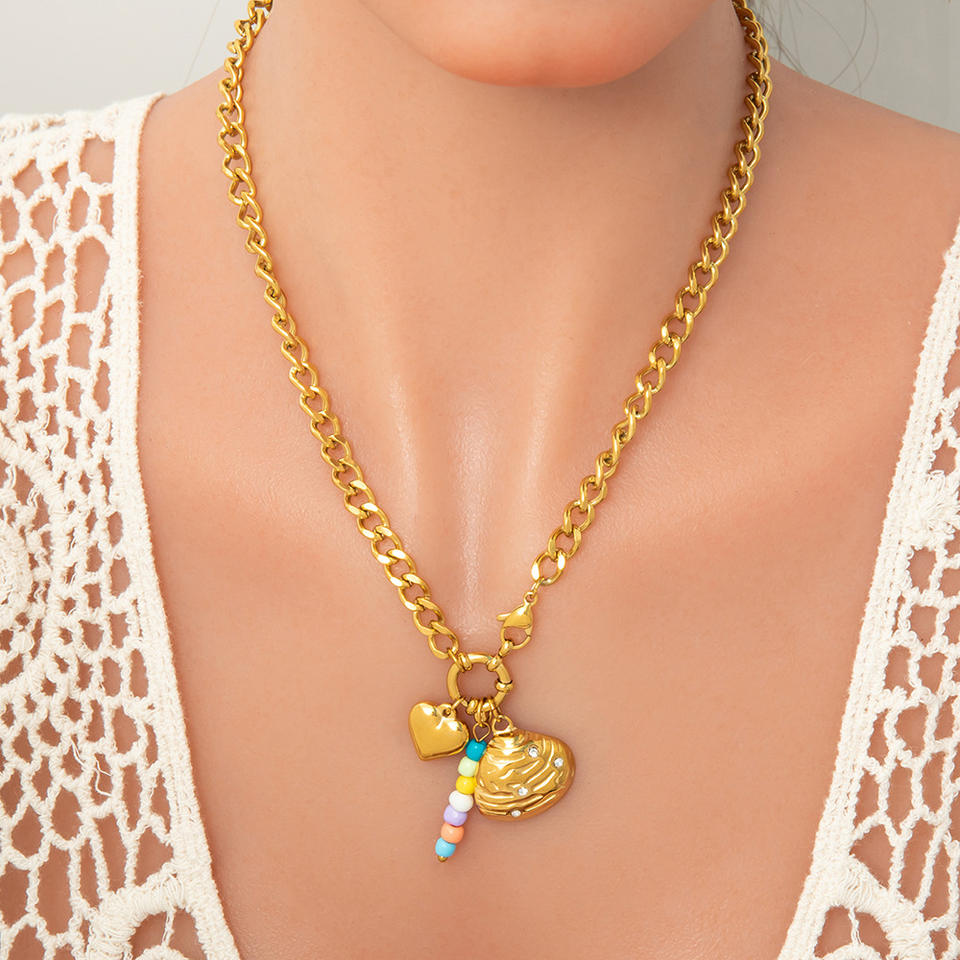 Collier pendentif cœur en acier inoxydable de style européen et américain avec perles de zircon et lettres, chaîne de clavicule, bijou cadeau haut de gamme