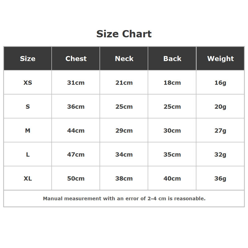 Poids:XS-16g, S-20g, M-27g, L-32g, XL-36g
