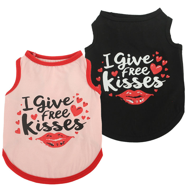 Gilet pour chien en polyester XS de style européen et américain à haute élasticité 'Free Kisses' and 'Love Mom Dad' Printed Stripe Pet Clothes