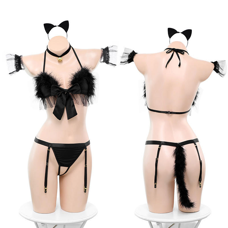 Ensemble de lingerie sexy à trois points de style européen et américain, adorable cosplay d'animal de compagnie, pour femmes adultes, mignon et charmant, avec petits nœuds de chat, sexy