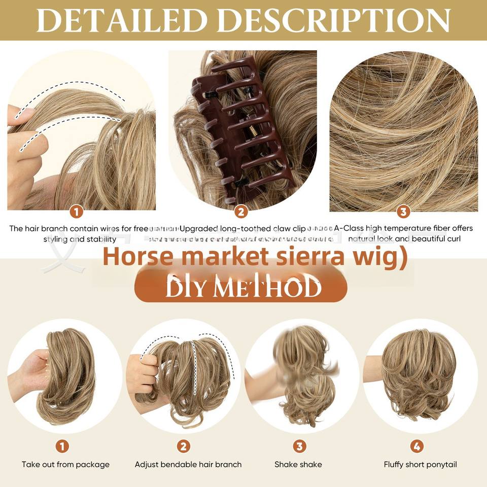 Chignon bouclé pour femme, style européen-américain, avec pince à cheveux, imitation queue de cheval, aspect naturel et volumineux, en fibre haute température