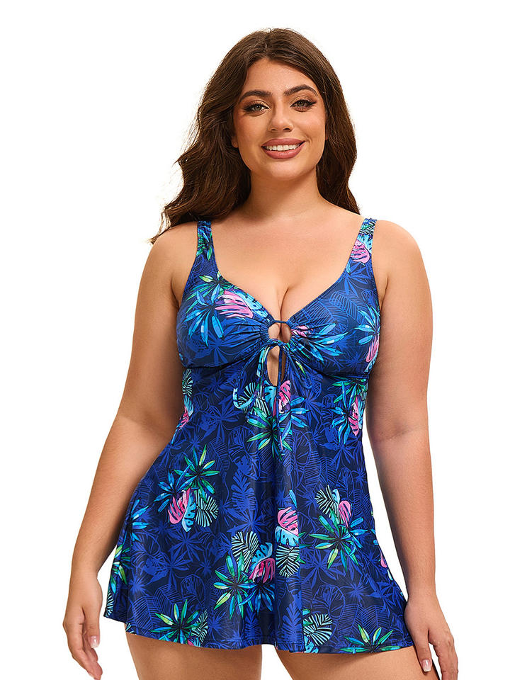 European American Women's Eco-Friendly Breathable Fitness Swimwear Stylish Solid Pattern Print Cut-Out Back Design Plus Size