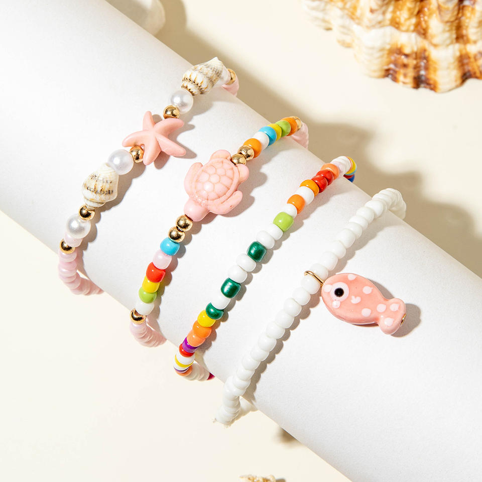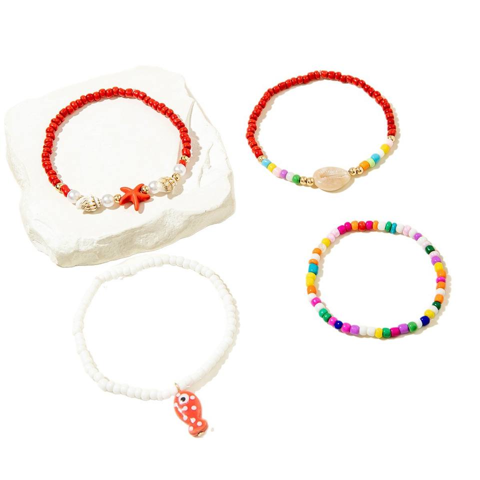 European And American Cross-Border Jewelry, Bohemian-Style Colorful Rice Zhuhai Star Four-Layer Womens Ankle Bracelet