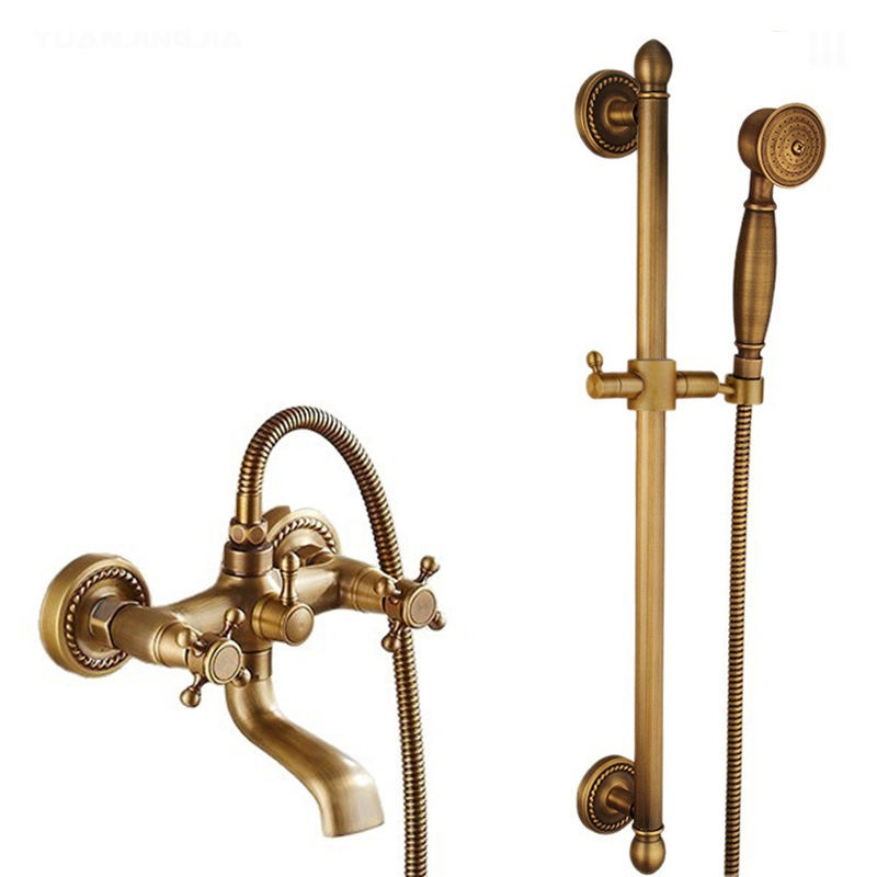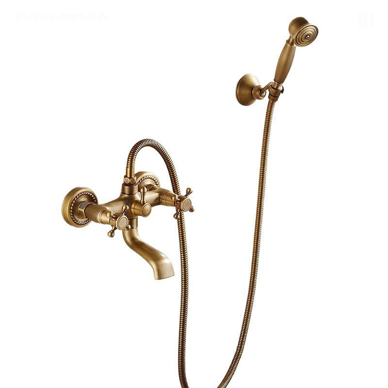 Robinet de douche mural extérieur en laiton massif antique européen à 3 poignées, avec douchette à jet pluie, cascade ou jet, pour WC