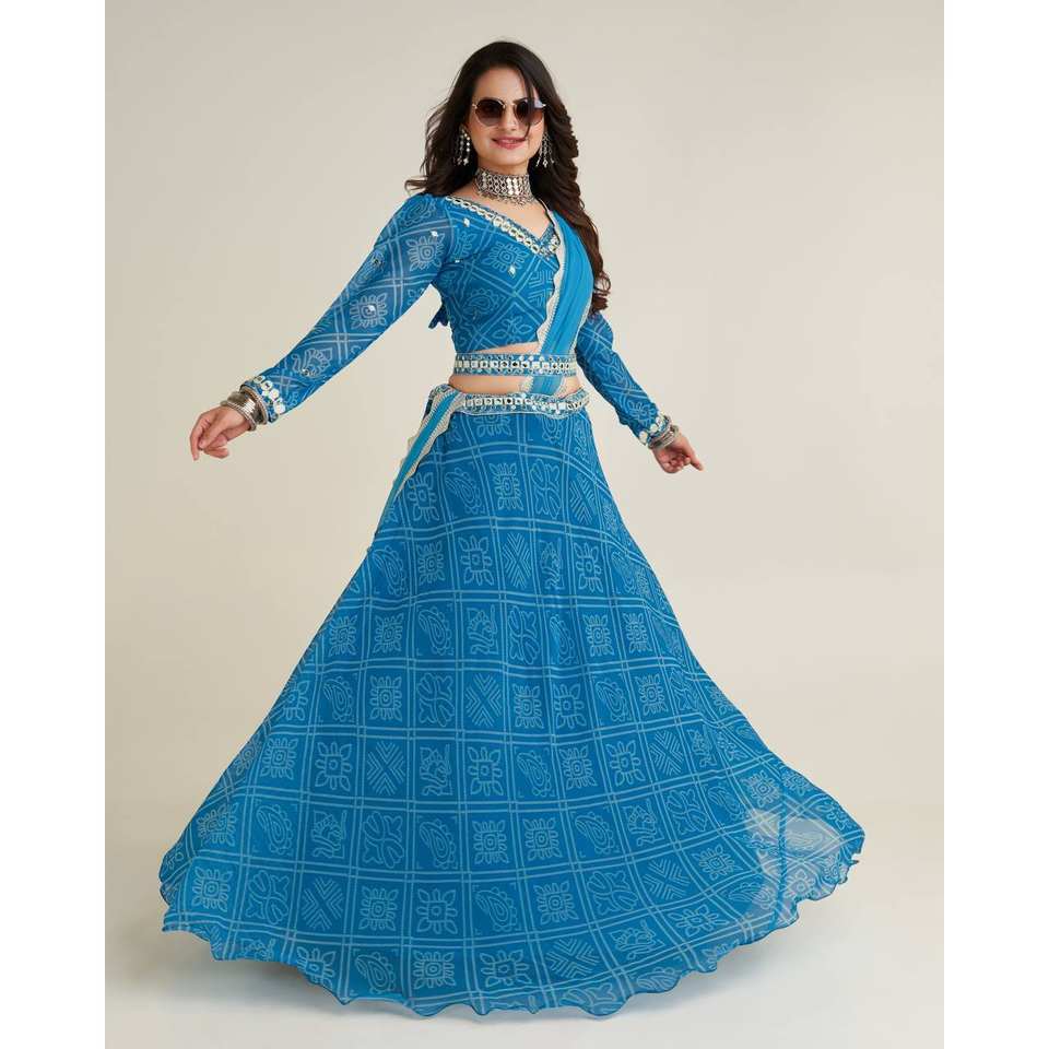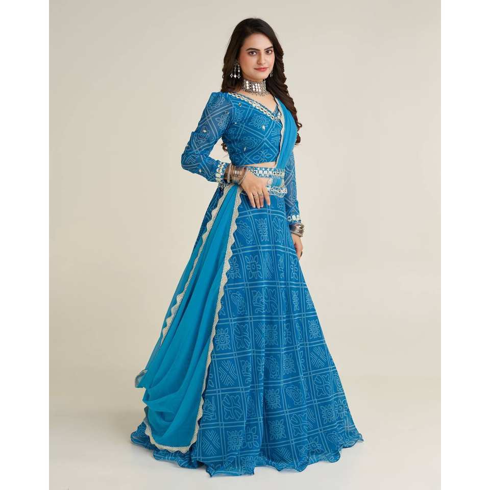 Belle européenne Lehenga Choli avec miroir en papier fileté et travail de séquence